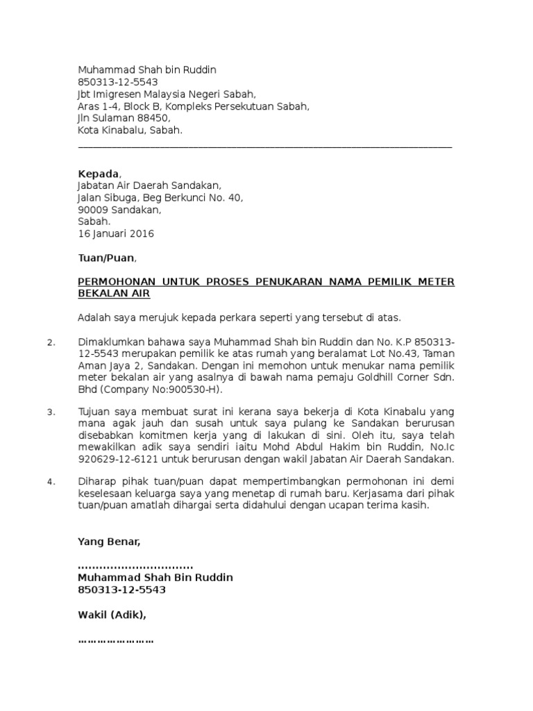 Contoh Surat Rasmi Permohonan Bekalan Air Vrasmi Otosection